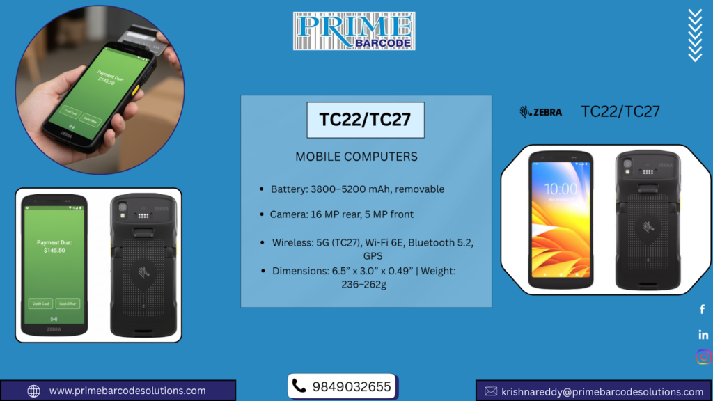 As an authorized dealer for Zebra Technologies, Prime Barcode Solutions is your trusted source for the TC22/TC27 mobile computers and all other Zebra products. We provide: